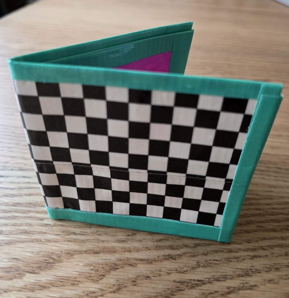 Home / Adult Clothing / Teal/Checkers Duct tape wallet