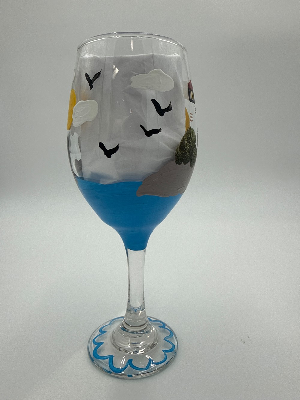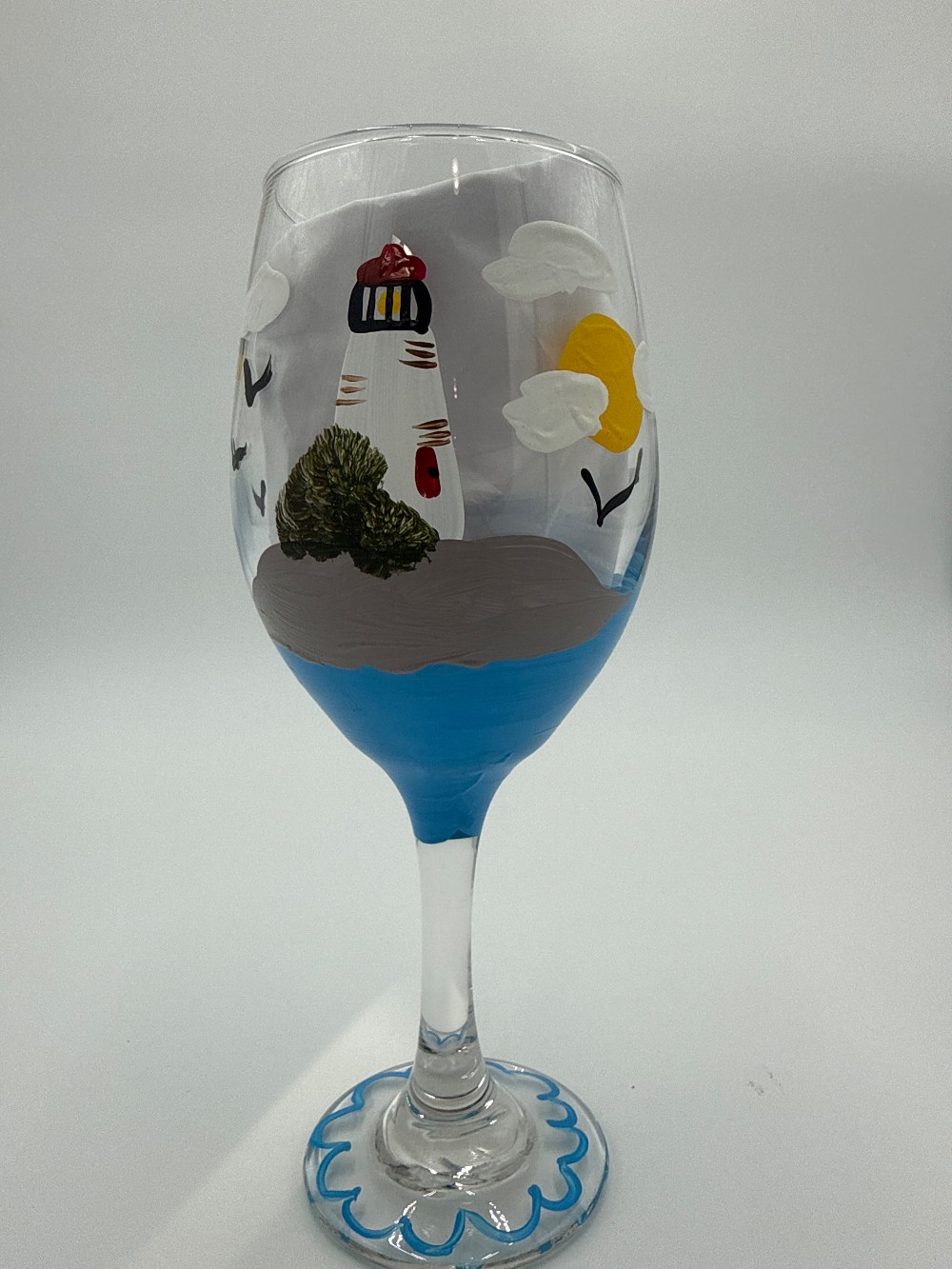 hand painted lighthouse wine glass, 14 0z please hand wash