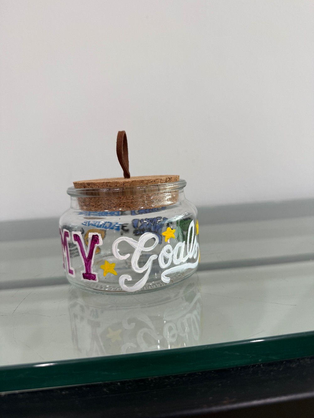 Keep track of your goals (weekly, monthly, yearly) by writing them down and putting them in this jar - take them out when you achieve them and realize your goals when it’s empty!