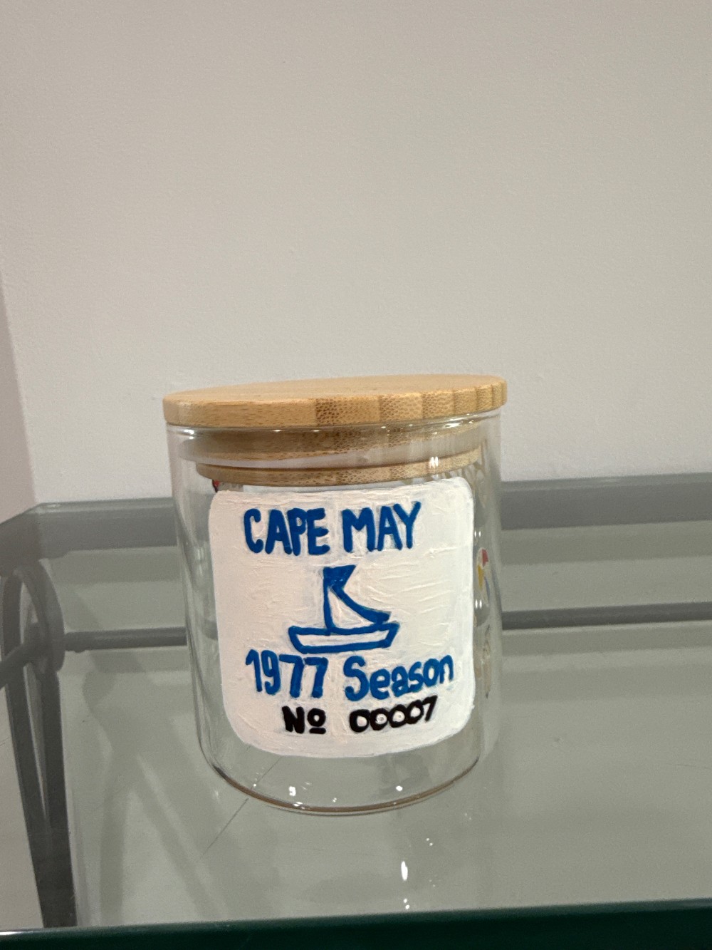 Keep track of your beach tags for the season with this hand-painted glass jar. Features the original Cape May beach tag design from 1977.
