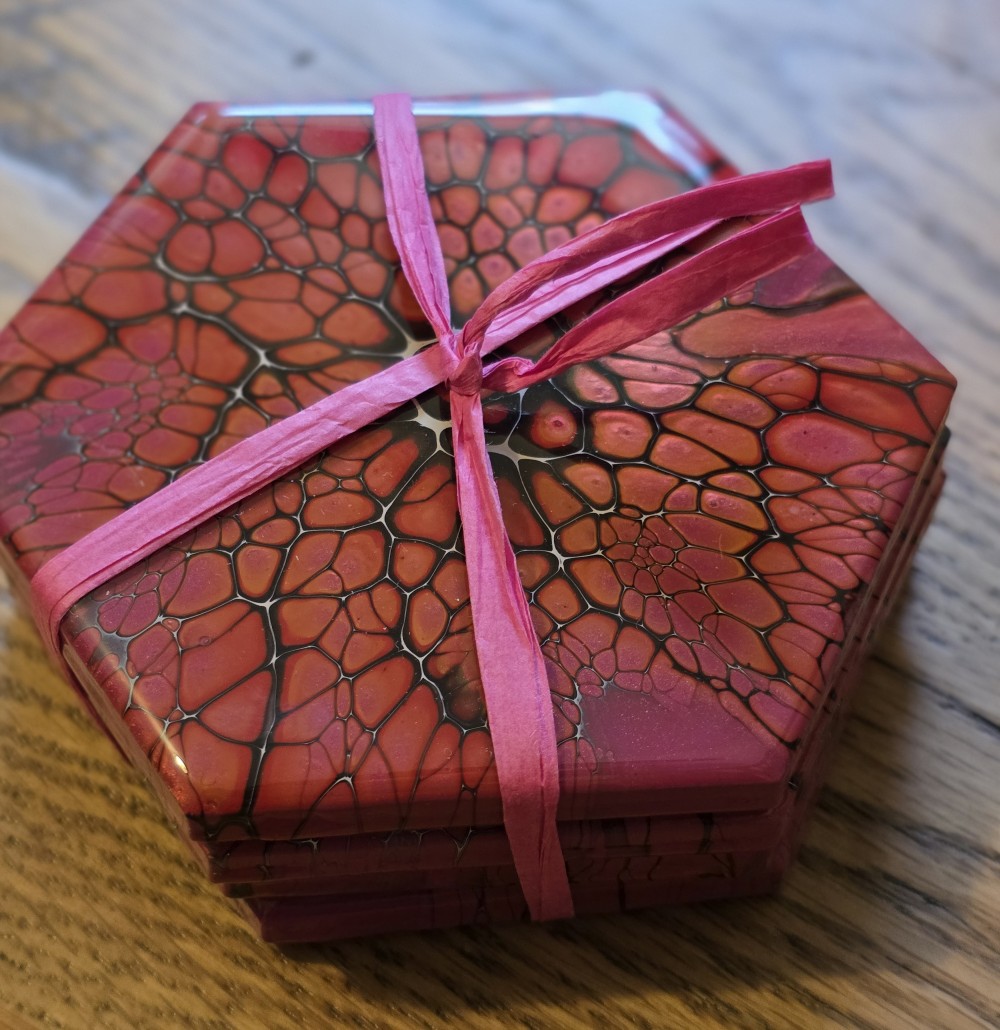 set of 4 ceramic coasters with acrylic paint and resin