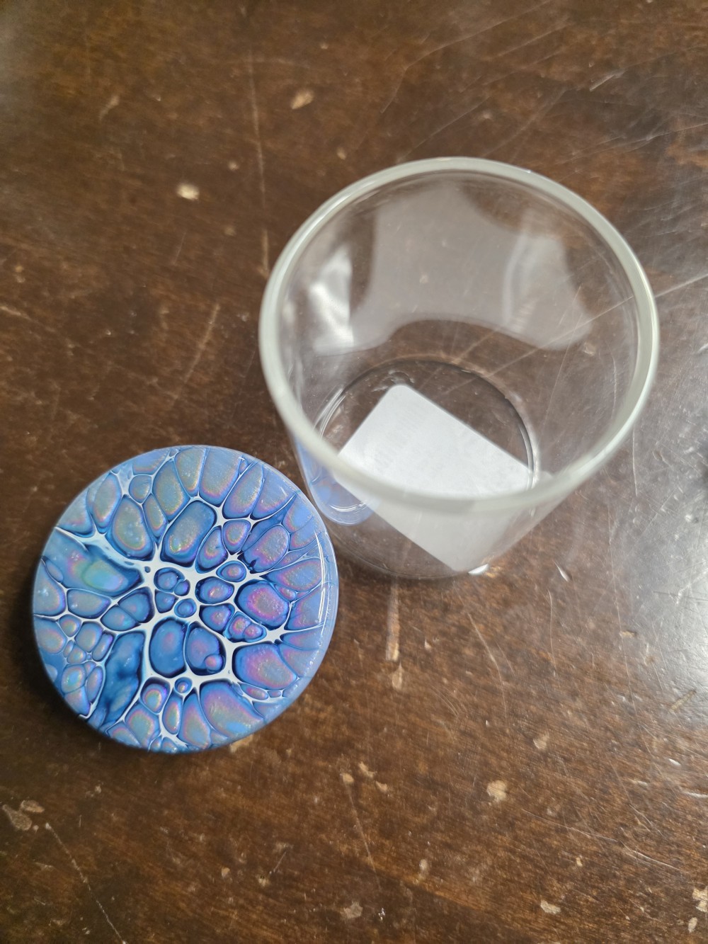 glass jar with painted wood lid finished with resin