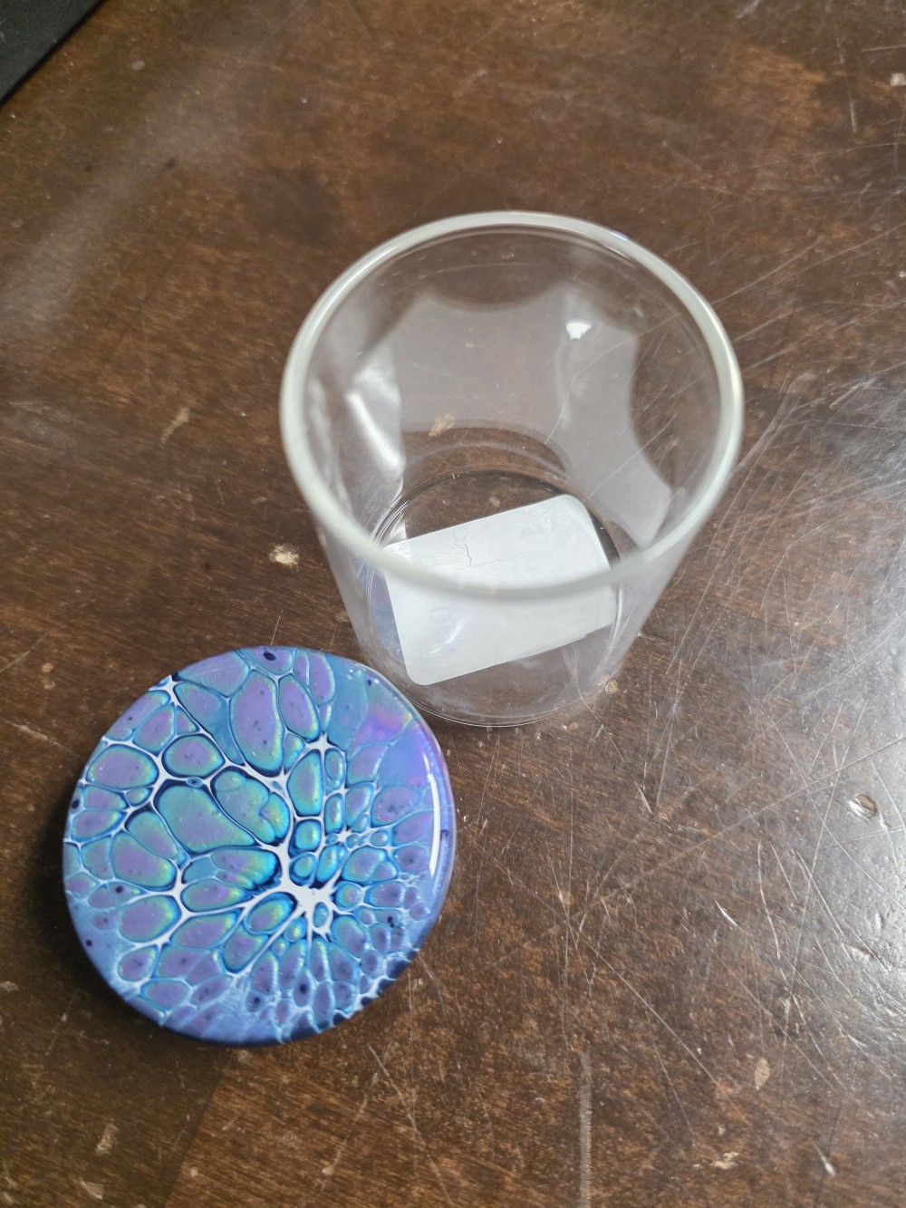 glass jar with painted wood lid finished with resin